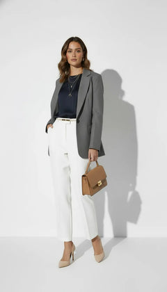 O blazer Serena combina uma silhueta moderna com a elegância clássica inspirada no estilo Old Money.